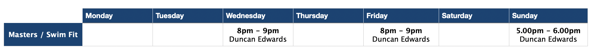 The Masters / SwimFit group is open to swimmers over the age of 14 years old.